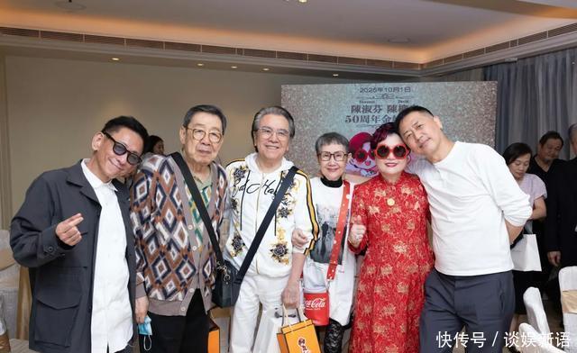 陳淑芬和大老爺陳柳泉邀請了一班至親好友出席「FlorenceandDavid50周年金婚之囍」。 今次金婚之囍晚宴地點設於半島酒店附帶露台的GardenSuite,當晚適逢國慶煙花匯演,陳太和大老爺便和一眾出席的至親好友:包括他們的家人、胡楓(修哥)、狄波拉(拉姑)、姜大衞、李琳琳、唐鶴德(唐唐)、何麗全、奚仲文、張叔平、陳華國、WingShya、馬榮成、RigoJesu、黎筱娉、顧紀筠、OwenChan、SimonTse、鍾楚霖、陳少琪、陳松伶、張鐸、謝天華、連炎輝、劉宏基和身兼主持的林盛斌(Bob)等,把握機會在漫天煙花的璀璨背景下,拍攝了非常珍貴的大合照留念。