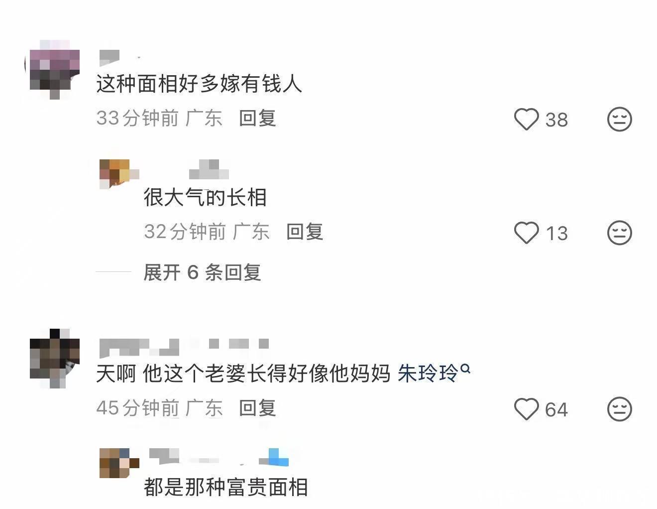 照片中的新娘Namfon(昵称南风)穿着白色礼服非常低调,她将头发全部盘起来,和婆婆朱玲玲神似,尤其是这张照片,南风感觉更像是朱玲玲的女儿,果然这种长相的都比较容易嫁入豪门。