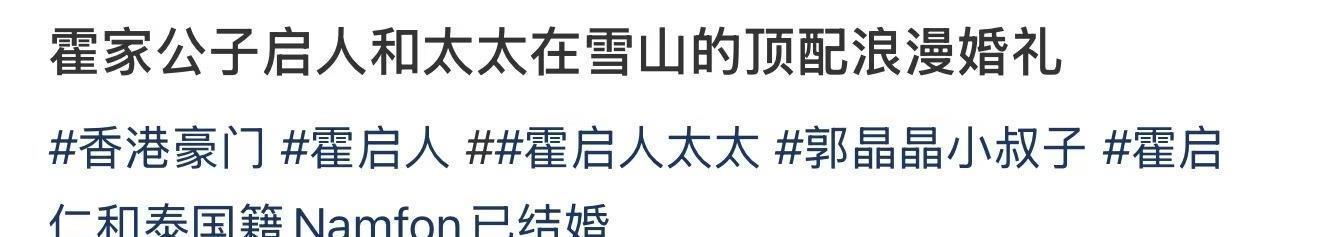 霍启仁将婚礼地点选在了丽江,在当地的知名酒店办理的,该酒店承包过多个有钱人的婚礼,不用出国而且风景极美,只不过以霍家的财力,在这里办婚礼是有些“委屈了”。和霍家同级别的何鸿燊家族,三太爱女何超莲嫁给演员窦骁,都是在巴厘岛办的婚礼。
